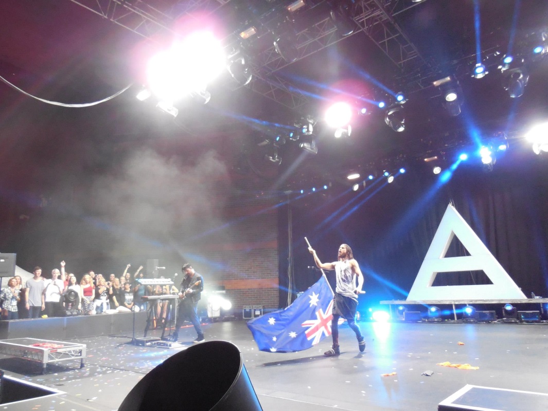 Thirty Seconds to Mars were amazing at the Perth show, Jared didn’t do too much running around, I think because they were all pretty jet lagged from their flight over (we live on another planet in Australia sorry). I was shocked to hear Jared start playing Save Me in his acoustic set, perhaps testing to see who knew the song. My heart skipped a beat when he came out on stage for Do or Die with the Australian flag in his hand, which was absolutely incredible to witness live, the bass boomed through my body. For Up in the Air Jared asked Shannon to help pick out some people to come up on stage. Shannon was the highlight of the Perth show, his drumming is electrifying and I couldn’t wait to witness it all again. I was so excited to see the band that I almost felt like I wasn’t even there in the crowd, I was thankful that this was just the beginning.